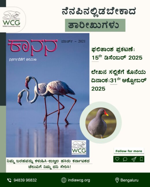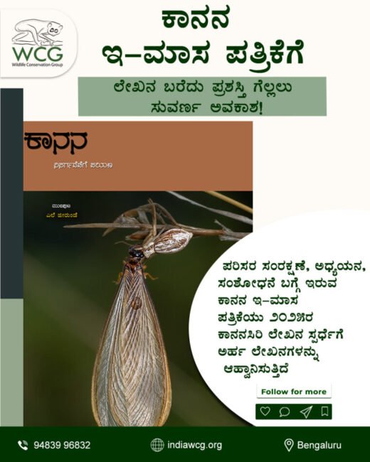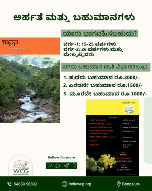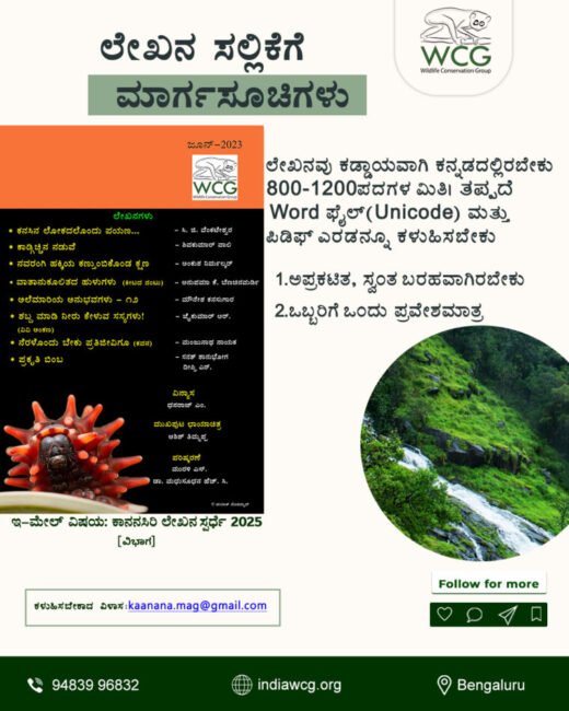 ನೀವು ಕನ್ನಡ ಬರಹಗಾರರಾಗಿದ್ದರೆ, ಪರಿಸರಕ್ಕೆ ಸಂಬಂಧಿಸಿದ ಅನುಭವಗಳು ನಿಮ್ಮಲ್ಲಿ ಇದ್ದರೆ ಇಲ್ಲಿದೆ ಕಾನನ ವತಿಯಿಂದ ಸುವರ್ಣ ಅವಕಾಶ. ಕಾನನ ಇ ಮಾಸ ಪತ್ರಿಕೆಯು ಕಾನನ ಸಿರಿ ೨೦೨೫ ಎಂಬ ಲೇಖನ ಸ್ಪರ್ಧೆಯನ್ನು ಆಯೋಜಿಸುತ್ತಿದೆ ನೀವು ಸಹ ಲೇಖನಗಳನ್ನು ಬರೆದು ಪ್ರಶಸ್ತಿ ಗೆಲ್ಲಬಹುದು.