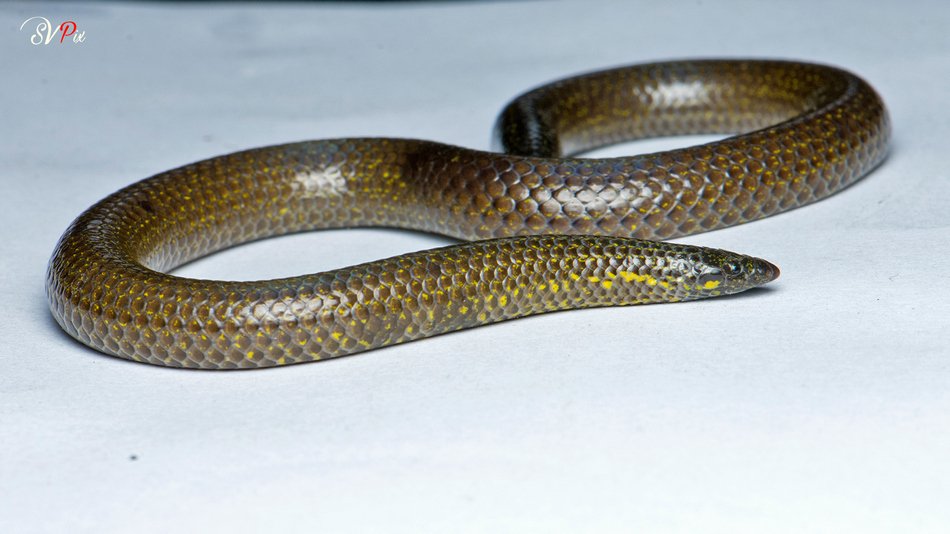 ದಕ್ಷಿಣ ಭಾರತದ ಕಾಡುಗಳಿಗೆ ಸ್ಥಳೀಯವಾಗಿರುವ ವಿಷಕಾರಿಯಲ್ಲದ ಈ ಈಲಿಯಟ್ ಗುರಾಣಿ ಹಾವು ಯುರೊಪೆಲ್ಟಿಡೆ (Uropeltidae) ಕುಟುಂಬಕ್ಕೆ ಸೇರುತ್ತದೆ. ಇದನ್ನು ವೈಜ್ಞಾನಿಕವಾಗಿ ಯುರೊಪೆಲ್ಟಿಸ್ ಎಲಿಯೋಟಿ (Uropeltis ellioti) ಎಂದು ಕರೆಯಲಾಗುತ್ತದೆ. ಕುತ್ತಿಗೆಯಿಂದ ಬಾಲದವರೆಗೂ ಸಿಲಿಂಡರಾಕಾರದಲ್ಲಿದ್ದು, ಹೊಳೆಯುವ ನಯವಾದ ಹುರುಪೆಗಳನ್ನು ಹೊಂದಿರುತ್ತದೆ. ಇದರ ತಲೆ ಚಿಕ್ಕದಾಗಿದ್ದು, ಕುತ್ತಿಗೆಗಿಂತ ಕಿರಿದಾಗಿರುತ್ತದೆ ಮತ್ತು ಶಂಕುವಿನಾಕಾರದ ಮೊನಚಾದ ಮೂತಿಯನ್ನು ಹೊಂದಿರುತ್ತದೆ. ಇದರ ಮೇಲ್ಭಾಗವು ಗಾಢ ಕಂದು ಅಥವಾ ಕಪ್ಪು ಮಿಶ್ರಿತ ಕಂದು ಬಣ್ಣದ್ದಾಗಿದ್ದು, ಹುರುಪೆಗಳಲ್ಲಿ ಸಣ್ಣ ಹಳದಿ ಚುಕ್ಕೆಗಳನ್ನು ಹೊಂದಿರುತ್ತದೆ. ಕುತ್ತಿಗೆ ಮತ್ತು ಬಾಲದ ಎರಡೂ ಬದಿಗಳಲ್ಲಿ ಹಳದಿ ಬಣ್ಣದ ಪಟ್ಟೆಯನ್ನು ಹೊಂದಿರುತ್ತದೆ. ಇದರ ಕೆಳಭಾಗದಲ್ಲೂ ಹಳದಿ ಚುಕ್ಕೆಗಳನ್ನು ಕಾಣಬಹುದು. ಎರೆಹುಳುಗಳು ಇವುಗಳ ಪ್ರಮುಖ ಆಹಾರವಾಗಿವೆ. ಮೊಟ್ಟೆಯು ಹೆಣ್ಣು ಹಾವಿನ ದೇಹದೊಳಗೆ ಒಡೆದು ಮರಿಗಳು ಹೊರಬರುತ್ತವೆ.